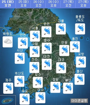 또한 27일까지 동해안과 남해안, 제주도에 높은 파도가 방파제나 해안도로를 넘는 곳이 있으니 시설물 관리와 안전사고에도 주의해야 한다고 덧붙였다.