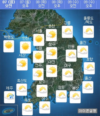 [소비자경제=정명섭 기자] 7일은 전국이 대체로 맑을 전망이다.