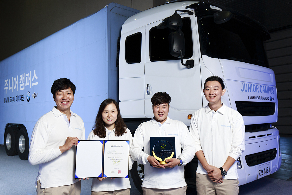 BMW 미래재단은 18일 고양시 일산 킨텍스에서 열리는 2015 교육기부 & 방과후학교 박람회 개막식에 참석해 인증서를 전달 받았다.