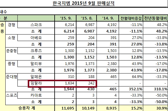 6일 업계에 따르면 한국지엠 임팔라는 9월 한달 간 1634대를 판매했으며, 누적계약대수만 1만824대, 대기물량이 8000대에 이른다고 알려졌다. 또한 올해 계약해도 차는 내년에나 받을 수 있을 정도로 뜨거운 인기를 얻고 있다고 전해지고 있다.