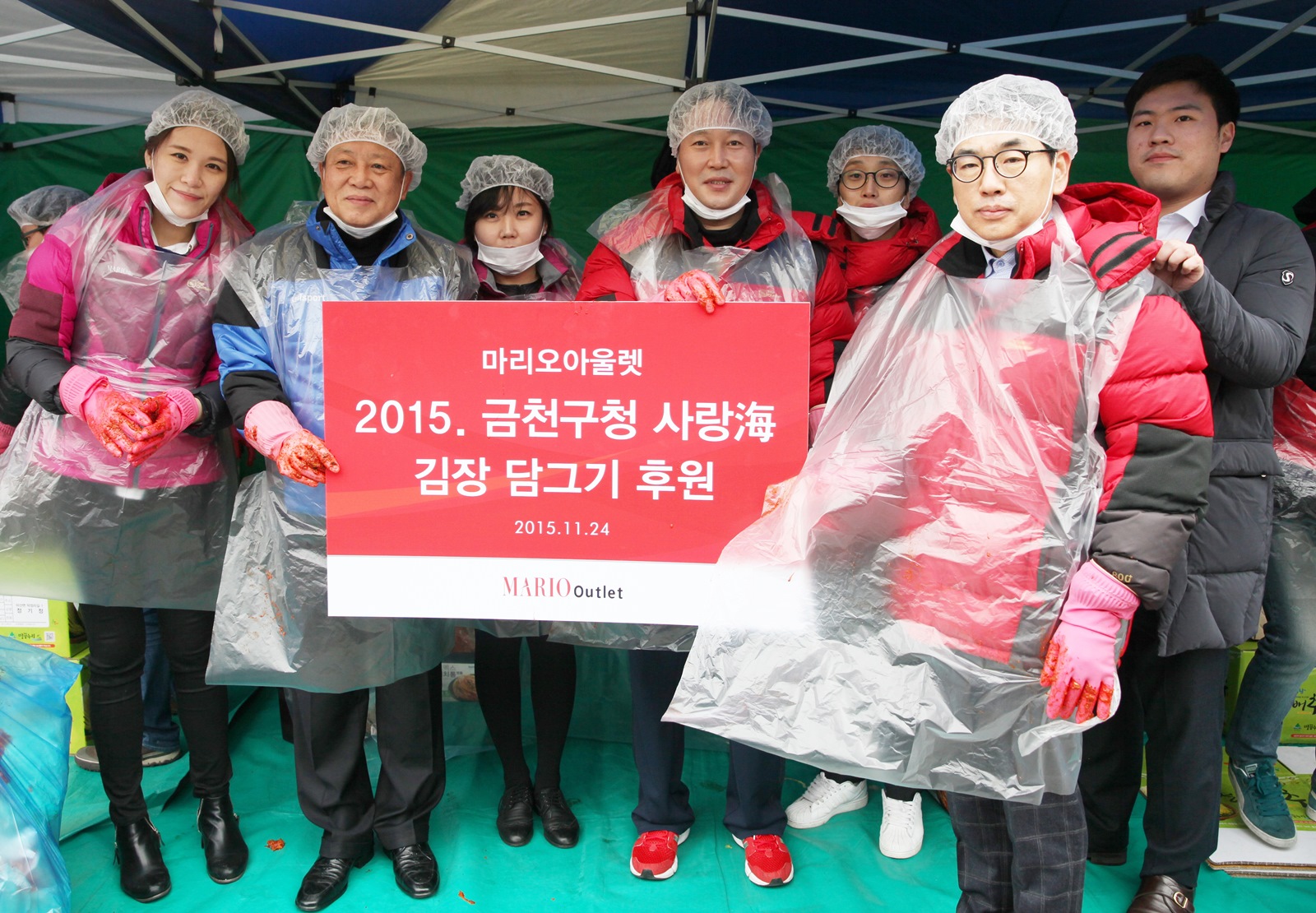 사랑의 김장 나눔 행사는 금천구청과 지역 봉사자들이 함께하는 행사로 마리오아울렛은 임직원과 함께 2011년부터 매년 참여하고 있다.