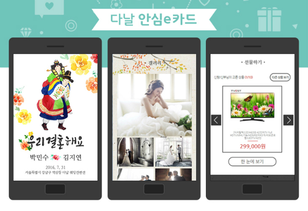[소비자경제=백연식 기자] 다날이 원하는 컨셉으로 셀프 제작이 가능한 무료 모바일 청첩장 ‘안심e카드’를 1일 출시했다.