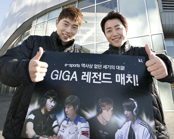 KT는 20일 서울 장충체육관에서 ‘GiGA 레전드 매치’를 열고 스타크래프트를 주름잡았던 4대천왕 홍진호, 기욤, 임요환, 이윤열의 매치를 통해 KT 기가 인터넷의 빠른 속도를 직·간접적으로 체험할 수 있게 한다.
