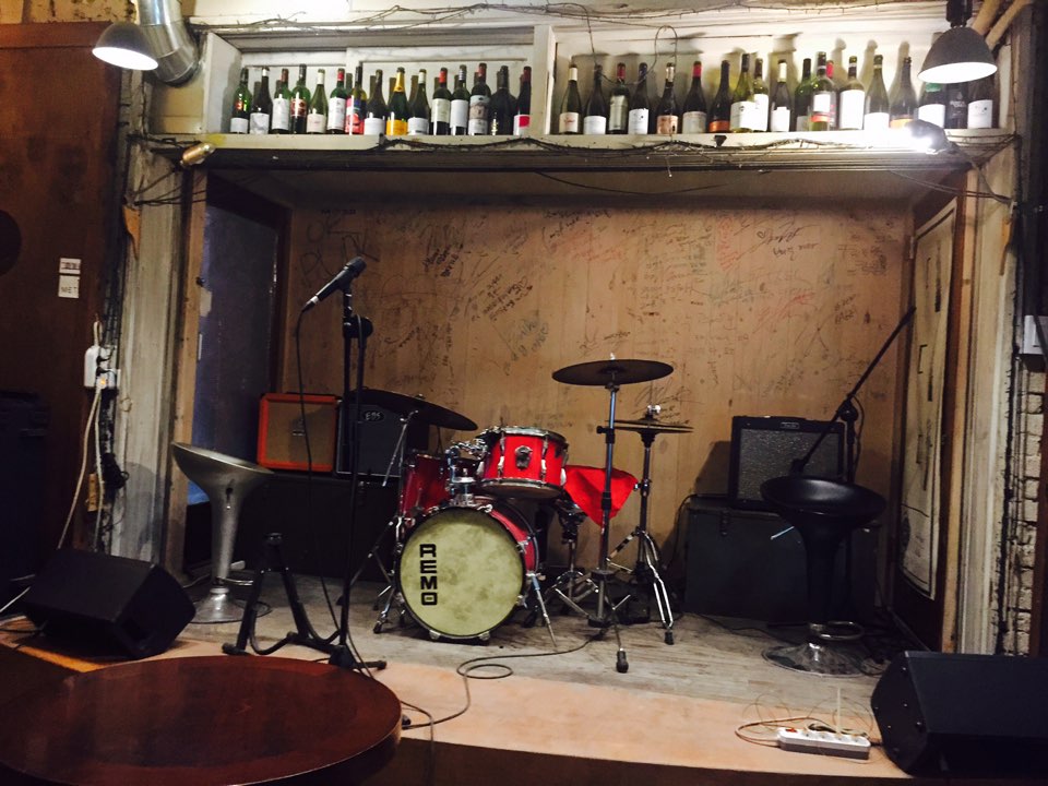 홍대 거리에 위치한 라이브바 어쿠스틱 홀릭은 무대를 둥글게 둘러싼 자리에서 음악을 즐길 수 있다는 것이 특징이다.