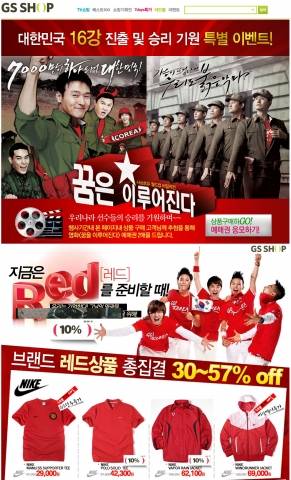 GS샵 인터넷쇼핑은 13일부터 보름 동안 ‘지금은 레드를 준비할 때’ 기획전을 열고 붉은 색상의 응원 상품들을 모아 판매한다.