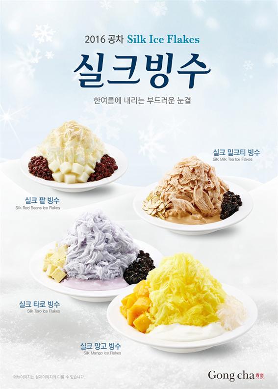 함께 출시되는 실크빙수 4종은 실크 밀크티빙수, 실크 타로빙수, 실크 망고빙수, 실크 팥빙수로 구성돼 실크 같은 빙질의 부드러움을 유지했다.