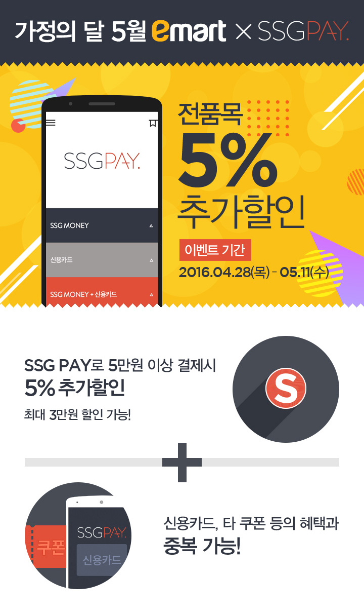 이번 프로모션은 별도의 할인 쿠폰을 챙길 필요 없이 앱만 있으면 결제부터 할인까지 한번에 가능해 보다 간편한 쇼핑을 즐길 수 있다. SSG페이의 가정의 달 프로모션과 관련된 자세한 내용은 SSG페이 앱 및 홈페이지를 통해 확인할 수 있다