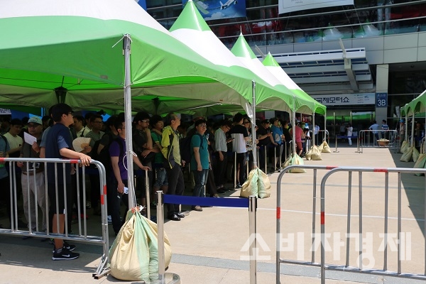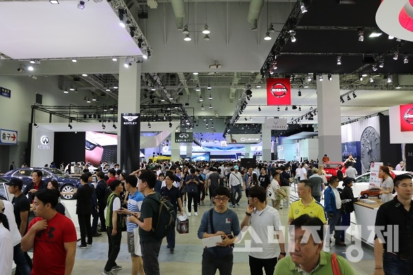 부산모터쇼는 개막 현장에는 수많은 관람객이 몰려들어 인산인해를 이뤘다. 이날 입장 가능시간(12시)이 되기 전부터 전국 곳곳에서 온 관람객의 줄이 길게 늘어서는 진풍경을 연출했다. 기온이 28도까지 오른 초여름 날씨임에도 입장권을 구매하려고 기다리는 이들의 표정에서는 기대감이 가득했다.