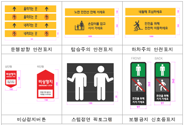 에스컬레이터 위치별로 운행방향, 유모차 진입금지, 걷거나 뛰지 않기, 손잡이 잡기, 하차주의 등의 이용자 안전수칙을 표시해 이용자의 주의를 유도할 계획이다.