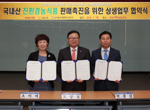 [소비자경제=이지연 기자] NS홈쇼핑이 iCOOP생협의 국내산 친환경 농산물 판매를 지원하고 생협 농가들을 대상으로 GAP인증 컨설팅을 진행하기 위해 '국내산 친환경 농식품 판매촉진을 위한 3자간 업무협약'을 체결했다.