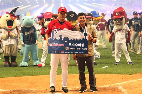아울러 16일 올스타전 우수수비상을 수상한 김주찬 KIA 선수에게도 한돈 30kg을 전달했다. 또한 대한적십자사의 소외계층 어린이돕기를 위한 사업에 한돈 1000인분을 전달하는 뜻 깊은 시간을 갖기도 했다.