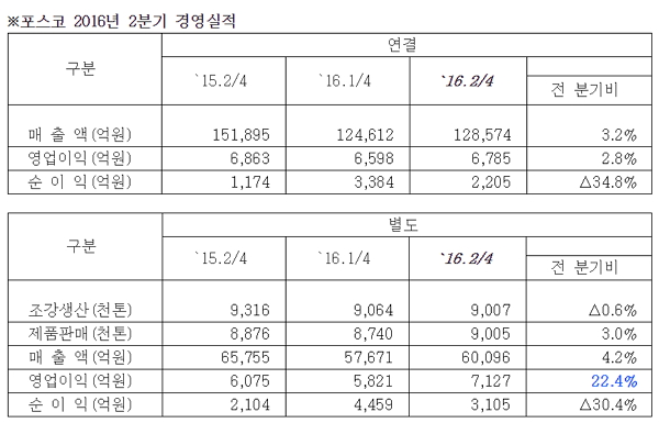 포스코는 E&C, 에너지 부문의 매출과 영업이익은 전분기 대비 다소 감소했으나, 철강, ICT, 소재 부문의 경영 실적이 개선됐다고 전했다.