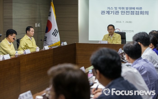 국민안전처(이하 안전처)가 26일 오전 정부서울청사에서 개최한 ‘가스 및 악취 발생에 따른 관계기관 안전점검회의’에는 환경부와 산업부, 경찰청, 기상청, 부산시, 울산시, 가스안전공사 등 관계기관과 전문가들이 참석해 원인 규명 방안 등을 논의했다.
