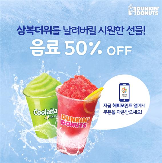 해피포인트 앱 고객 대상으로 던킨도너츠 제조 음료 50% 할인혜택 제공