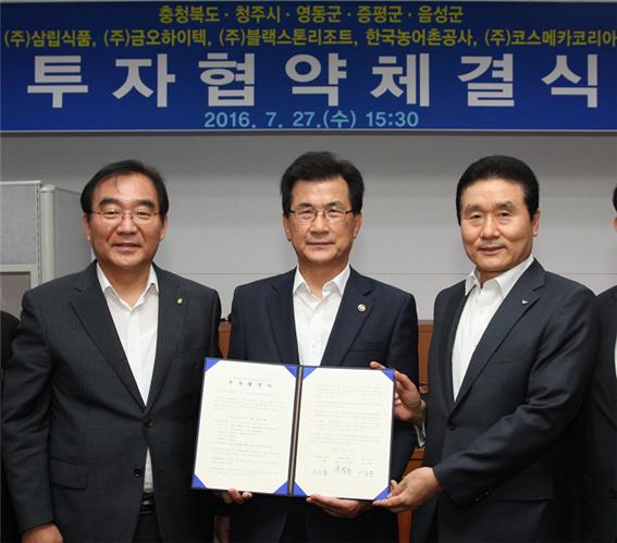 지난 27일 오후 3시 충북도청에서 열린 투자협약체결식에는 이시종 충청북도지사와 이승훈 청주시장, 윤석춘 삼립식품 대표이사 등이 참석했다.