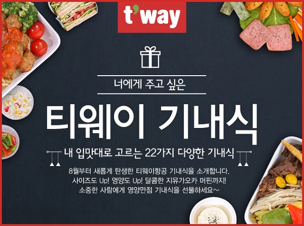 티웨이항공은 새로워진 기내식과 함께 풍성한 이벤트도 마련된다. 이달 5일부터 31일까지 티웨이항공 페이스북 이벤트 게시글에 기내식을 선물하고 싶은 사람을 태그한 후 원하는 메뉴를 댓글로 남기면 된다.