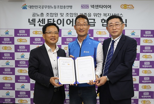 [소비자경제=정명섭 기자] 넥센타이어가 대한민국공무원노동조합총연맹(이하 공노총) 및 아이엔지샵 주식회사(이하 아이엔지샵)와 타이어 공급 협약식을 가졌다고 5일 밝혔다.