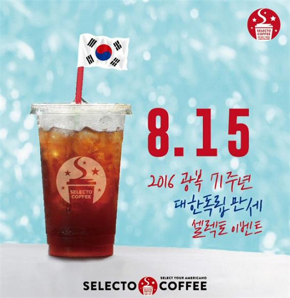 [소비자경제=서예원 기자] 프랜차이즈 커피전문점 셀렉토커피가 오는 15일 광복절을 맞아 ‘8.1.5 대한독립만세’ 이벤트를 진행한다고 12일 밝혔다.