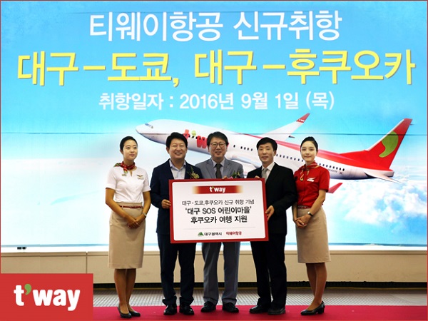 [소비자경제=정명섭 기자] 대구에서 출발하는 후쿠오카와 도쿄 노선의 본격적인 운항을 시작한 티웨이항공이 대구 시민들과 신규 취항 기념행사를 함께 했다고 2일 밝혔다.