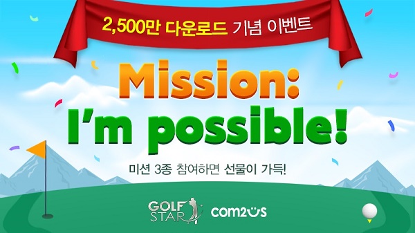 컴투스는 ‘골프스타’의 2500만 다운로드 달성을 기념해 내달 12일까지 글로벌 전체 이용자를 대상으로 3종의 미션 이벤트를 진행한다.