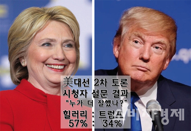 제1차 TV토론 당시보다 클린턴 후보는 다소 주춤했지만, 트럼프 후보는 소폭 상승해 눈길을 모았다.