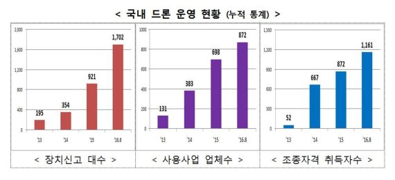 국토교통부는 특히 드론에 올해 예산 30억 보다 5배 이상 많은 금액을 2017년 편성할 예정이다. 세계시장 급속성장에 발맞춰 드론산업을 활성화하기 위해 기술개발·인프라 등 기반을 구축할 계획이라고 밝혔다.