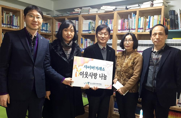 이번 설 명절에는 사이버거래소가 소재한 서울시 서초구 관내의 복지시설인 하나복지학교(방배동)와 한우리 정보문화센터(서초동)를 방문해 지원했다. 또 온누리 상품권으로 후원금을 전달해 일석이조 나눔으로 침체된 전통시장 활성화까지 기대된다.