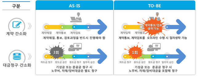 이뿐만 아니라 발주기관이 동일하더라도 계약별로 계좌를 만들어야 했던 것을 개편된 시스템에서는 발주기관이 동일한 경우 계약에 관계없이 중복으로 약정계좌 사용이 가능해졌다.