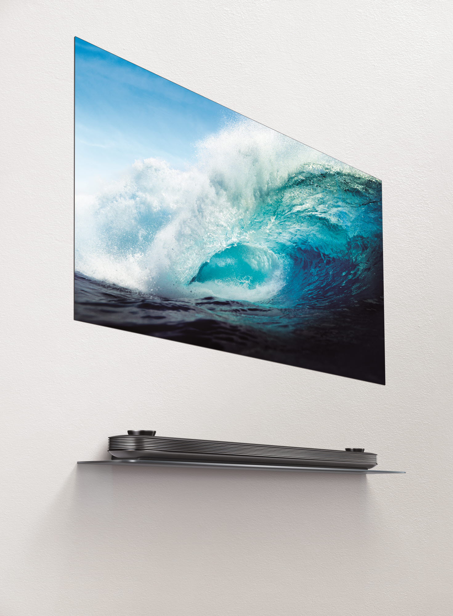 이 제품은 벽과 하나되는 월페이퍼 디자인의 TV다. 설치 시 두께가 4mm(65W7 기준)도 채 안돼 마치 그림 한 장이 벽에 붙어 있는듯한 느낌을 준다. 화면 이외의 요소를 철저히 배제해 미니멀리즘 디자인을 구현했다.