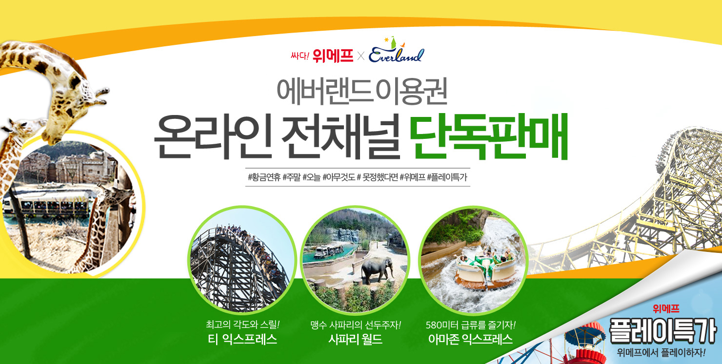 이대훈 위메프 여행티켓도서사업부장은 “봄을 맞아 나들이를 계획하는 소비자들을 위해 에버랜드 내의 주요 시설 이용권을 단독 할인가로 준비했다”며 “본격적인 봄을 맞아 체험 활동과 입장권 등 더욱 다양한 나들이 상품을 선보이겠다”고 말했다.