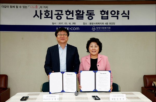 [소비자경제=김현식 기자] 롯데닷컴은 17일 지난 16일 서울 서대문구에 위치한 동방사회복지회와 사회공헌활동을 위한 업무협약(MOU)을 체결했다고 밝혔다.
