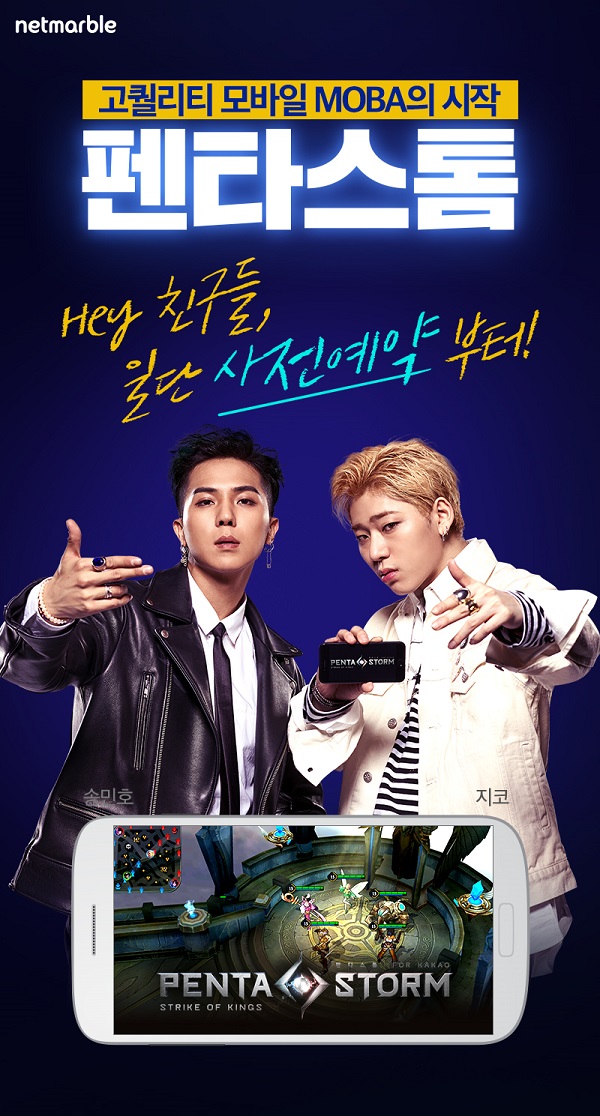 [소비자경제=김현식 기자] 넷마블게임즈는 21일 올해 최고 기대작 중 하나인 모바일 MOBA ‘펜타스톰 for Kakao’ 광고모델로 힙합 아티스트 지코와 송민호를 발탁했다고 밝혔다.