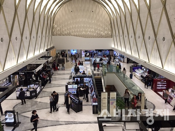 또한 롯데면세점 9층 매장에 들어서자 매장 직원들이 삼삼오오 모여 대화하고 있는 모습이 눈에 들어왔고, 고객이 크게 줄어든 탓에 매장 분위기는 예전보다 더욱 썰렁해졌음을 실감케 했다.
