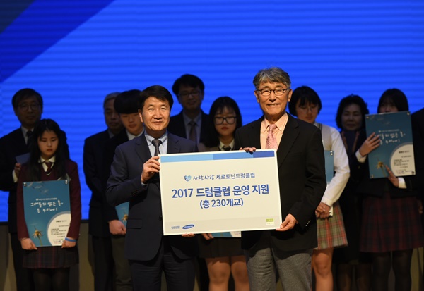 이날 행사는 올해 새롭게 창단한 22개 중학교의 교장, 학부모, 학생 등 200여명이 참석한 가운데 △드럼클럽 창단 증서 및 현판 전달식, △창단을 축하하는 난타팀의 공연, △삼성생명 임직원들의 기부금을 전달하는 후원증서 전달식 등으로 꾸며졌다.