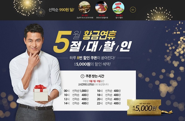 [소비자경제=김화신 기자] 위메프는 1일부터 이어지는 황금연휴를 기념해 할인쿠폰을 대방출한다.