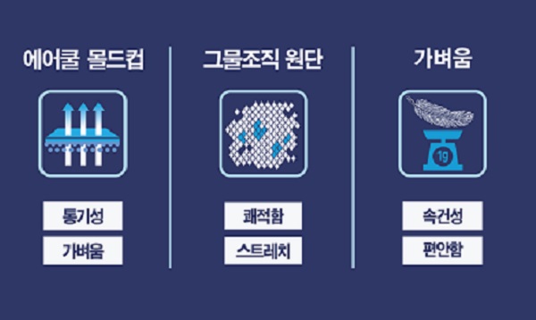 이번 신상품에 적용된 몰드는 무게가 단 1g인 경량 직조몰드로, 가볍고 바람이 통하는 공기 구멍이 있어 여름철에도 시원하게 착용할 수 있다.