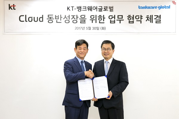 [소비자경제=김현식 기자] KT와 뱅크웨어글로벌은 30일 KT 광화문 West 사옥에서 ‘Cloud 동반 성장을 위한 업무협약’을 체결했다고 밝혔다.