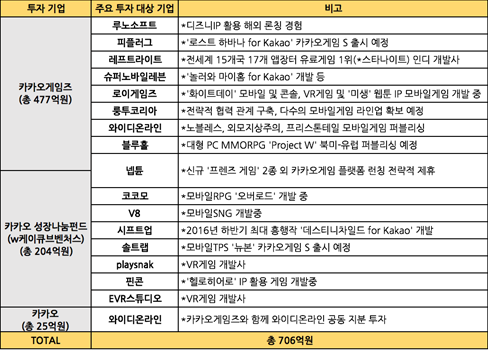 아울러, 카카오가 투자한 기업들이 개발 중인 수십 종의 모바일·PC·가상현실(VR) 게임들이 올해부터 국내와 글로벌 시장에 순차적으로 출시될 예정이다.