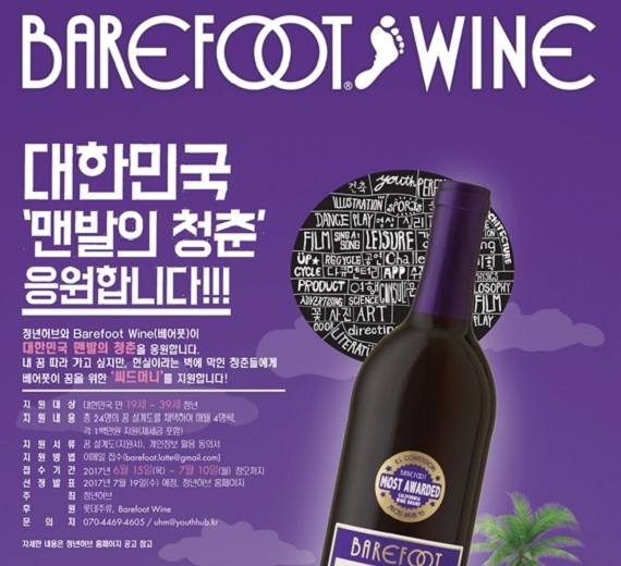 롯데주류는 청년 실업으로 대표되는 청년문제로 낙담할 수 있는 대학생 및 청년층을 격려하고자 와인 브랜드 ‘베어풋’에서 착안해 캠페인을 기획했다.