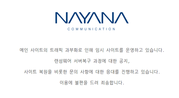 인터넷나야나는 16일 자사의 홈페이지에“ 피해 서버 153대 가운데 1차로 50대를 복구 중”이라고 공지했다.