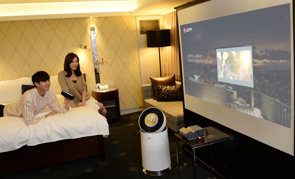 LG전자는 △LG 미니빔 TV △LG 퓨리케어 360도 공기청정기 △LG 포터블 스피커 △LG 포켓포토 등 제품을 빌려준다. 고객들이 특급 호텔에서 휴식을 취하며 LG 인기 제품도 사용해볼 수 있는 경험을 제공한다.