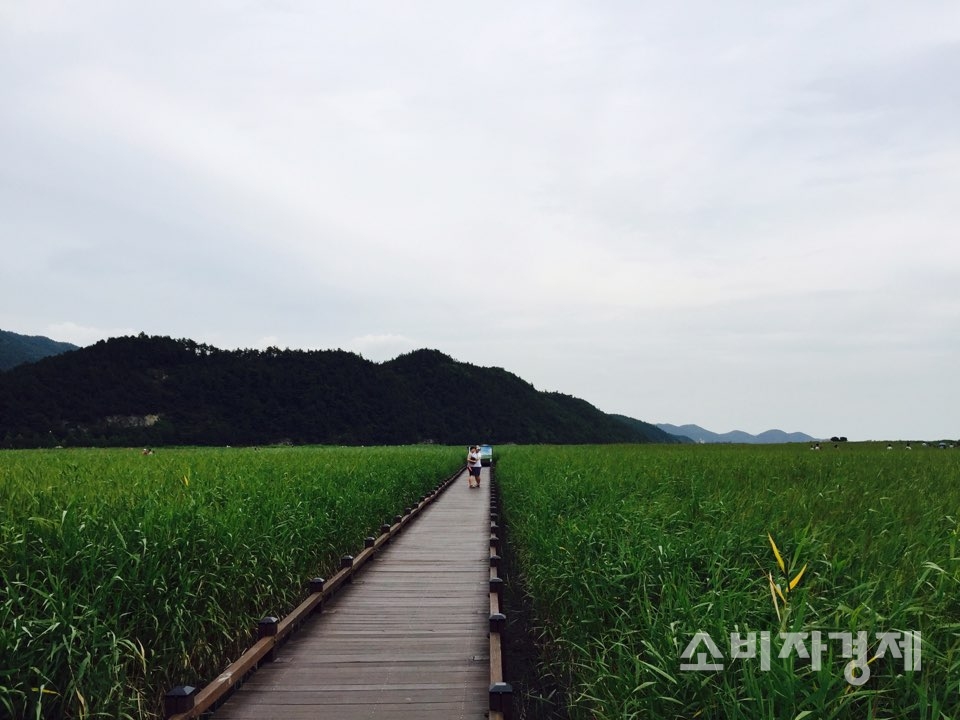 [소비자경제=김현식 기자] 순천만 갈대숲의 초록빛 향연이 끊임없이 펼쳐지고 있다. 순천만습지 위 다리 한복판에 서면 발 아래로 초록 물결이 펼쳐진다. 사각거리는 초록빛 갈대의 속삭임이 시원하다.