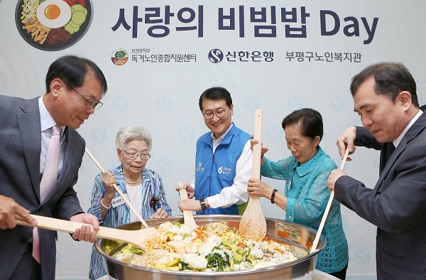 이번 행사에서 신한은행은 폭염에 취약한 어르신들을 위해 독거노인종합지원센터에 여름나기 물품으로 쿨매트, 여름이불 등을 전달했으며, 독거어르신 75명과 신한은행 임직원 40명이 함께하는 ‘사랑의 비빔밥 Day’를 열었다.