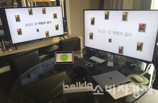 이날 벨킨은 최신 주력 제품인 올인원 도킹 솔루션인 썬더볼트 3 익스프레스 독 HD와 차세대 혁신 기술인 USB-C 솔루션 등을 공개했다.