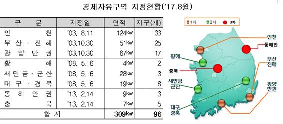 2013년 지정받은 동해안권의 경우 신고액은 8620만불에 이르지만 실제 도착액은 300만불에 불과하다. 2003년과 2008년에 각각 지정받은 광양과 새만금권 역시 신고액 9억 7290만불 대비 도착액 2억 7560만불, 신고액 10억 250만불 대비 2억 2400만불에 그치고 있다. 산업통상자원부는 투자 도착이 아닌 신고만으로 사업의 성과지표를 작성하고 있다.