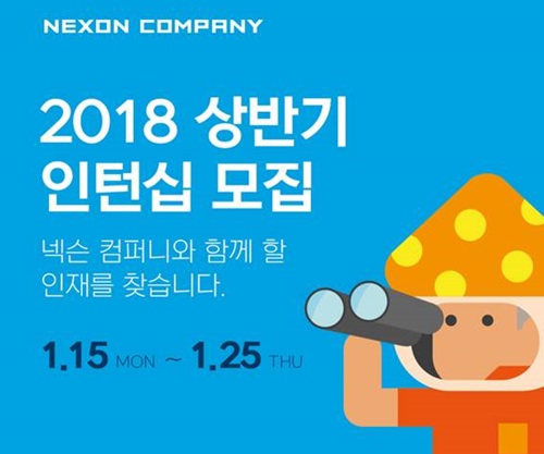[소비자경제=오아름 기자] 넥슨은 15일부터 25일까지 2018년도 상반기 인턴사원을 공개 모집한다.