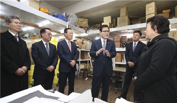 IBK기업은행은 지난 17일 김도진 은행장이 최종구 금융위원장과 함께 을지로 방산종합시장을 방문해 최저임금 인상에 따른 소상공인의 고충을 듣고, 경영안정을 위한 금융지원 방안을 안내했다고 밝혔다.