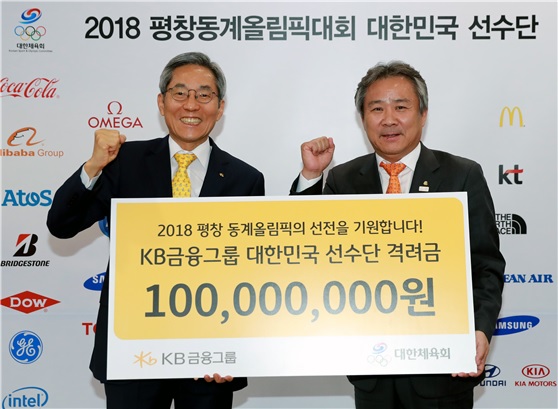 KB금융그룹은 지난 29일 대한체육회를 방문해 2018 평창 동계올림픽에 출전하는 대한민국 국가대표 선수단에 1억원의 격려금을 전달했다고 밝혔다.