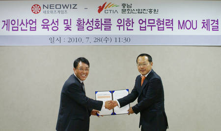 [소비자경체=최덕환 기자] 네오위즈게임즈는 충남문화산업진흥원과 게임문화 및 산업 육성 및 활성화를 위한 양해각서(MOU)를 체결했다고 29일 밝혔다.