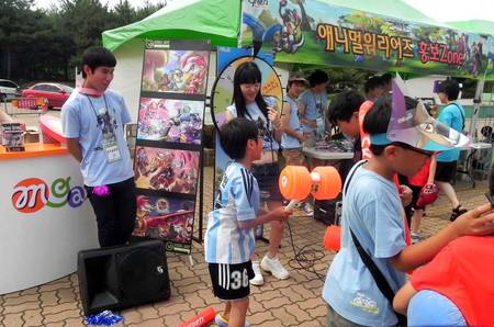 먼저 행사가 시작되기 전 애니멀워리어즈의 동물캐릭터 소, 양 얼굴이 그려진 썬캡과 판박이 스티커를 배포하고 캐릭터 인형과 함께하는 포토존에서는 즉석 사진 촬영 서비스를 제공했다.